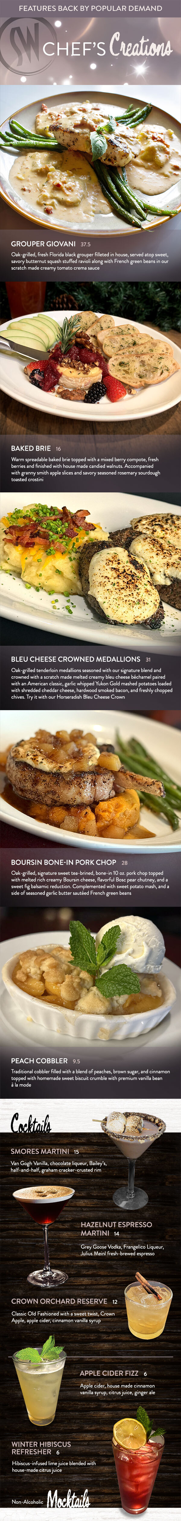 The flavors of the holidays have arrived at Stonewood. Settle into cozy, comforting dishes that capture the magic of the season. Join us for these festive flavors—available for a limited time only.