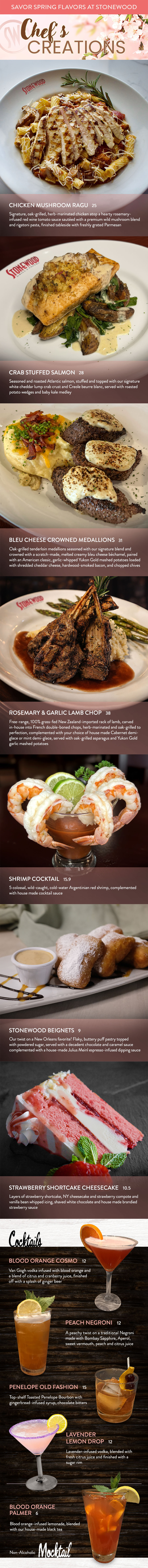 Spring awakens something special at Stonewood. Discover our vibrant, seasonal creations crafted for the season and available for a limited time.
